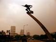 Patung Dirgantara di bundaran Jalan Jenderal Gatot Subroto (Seberang Wisma Aldiron Dirgantara, dahulu Markas Besar Angkatan Udara Republik Indonesia) dibuat berdasarkan rancangan Edhi Sunarso, dikerjakan oleh pematung keluarga Arca Yogyakarta pimpinan Edhi Sunarso. Ide pertama adalah dari Presiden Soekarno yang menghendaki agar dibuat sebuah patung mengenai dunia penerbangan Indonesia atau kedirgantaraan. Patung ini menggambarkan manusia angkasa, yang berarti menggambarkan semangat keberanian bangsa Indonesia untuk menjelajah angkasa.